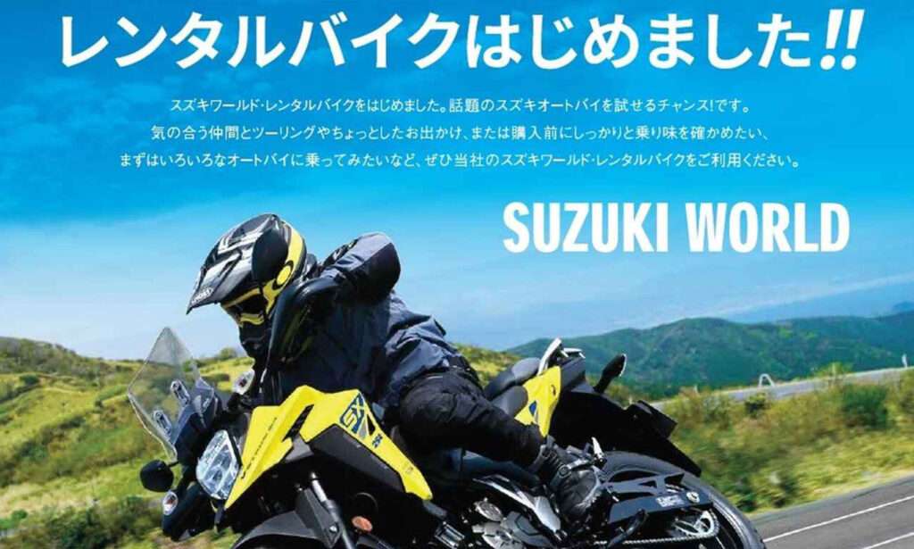 | レンタル車両 | Vストロームシリーズ、GSX-8R、ジクサーSF250など、スズキの現行モデル・話題の車種が中心。 |