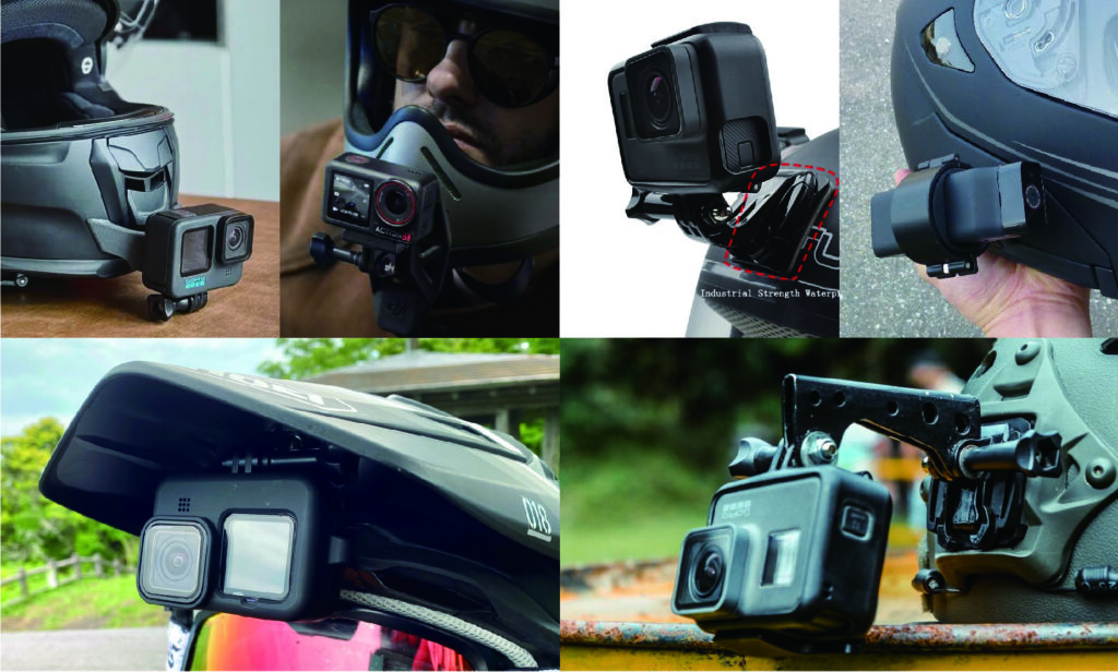 | ヘルメット 頭頂部 | 高い位置からの視点で、 広い視野角と客観的な走行シーンを捉える。 グループ走行で後ろのライダーを 映すのにも適している。 | トップマウント (両面テープまたはストラップ)。 カメラが水平になるよう角度調整が必要。 | 安定性は高いが、風切り音対策は必要。 トンネルや低い構造物に注意。 |