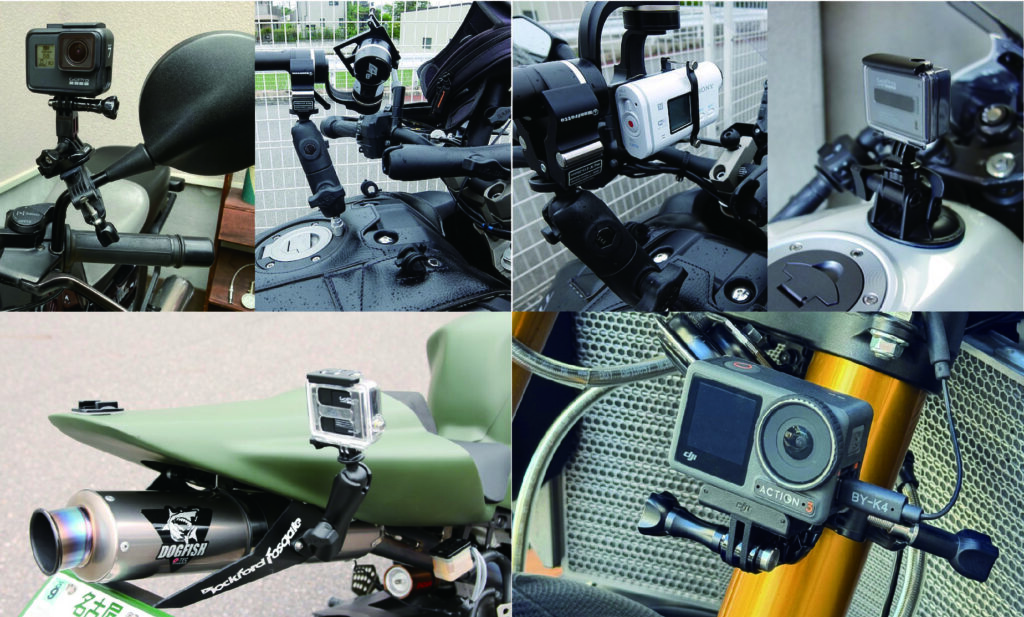 ハンドルバーやタンクなど、設置箇所を選ぶことで多様な視点から撮影が可能です。
