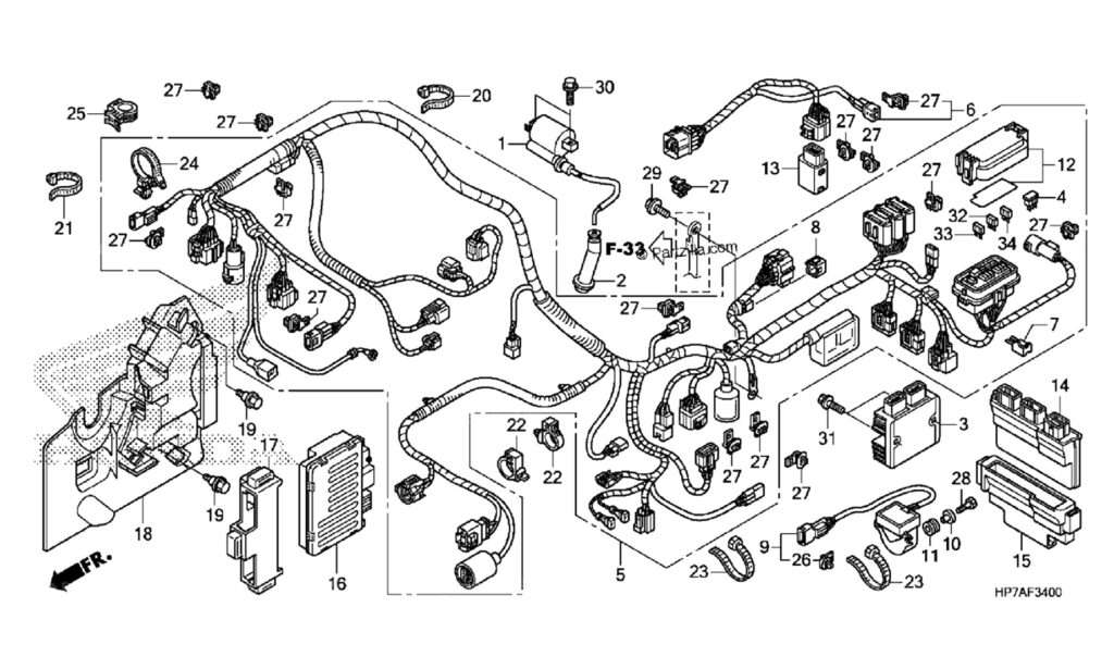 • 電力供給:バッテリーからヘッドライト、スターター、メーターなど各電装部品へ電力を分配します。