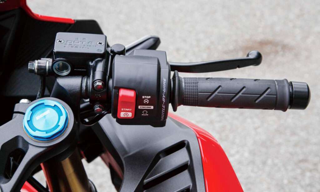 ライダーが右手でグリップを回すことで、エンジンに送る空気と燃料の量を調整し、加速・減速を行います。