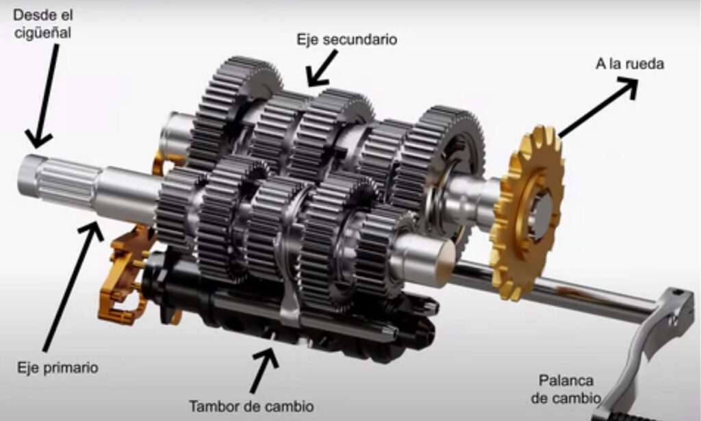 オートバイのトランスミッション(変速機)は、以下の主要部品で構成されています