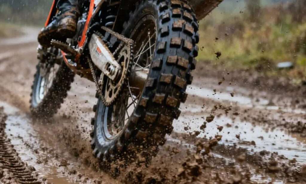 7. オフロードタイヤ:土や砂利道でのグリップ力を確保するため、深い溝とブロックパターンを採用。