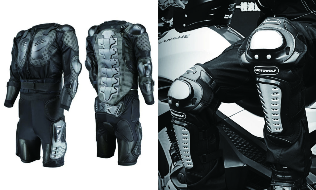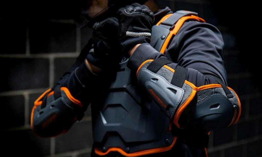 - 肘プロテクター: ジャケットやスーツに組み込まれ、肘の保護を強化。