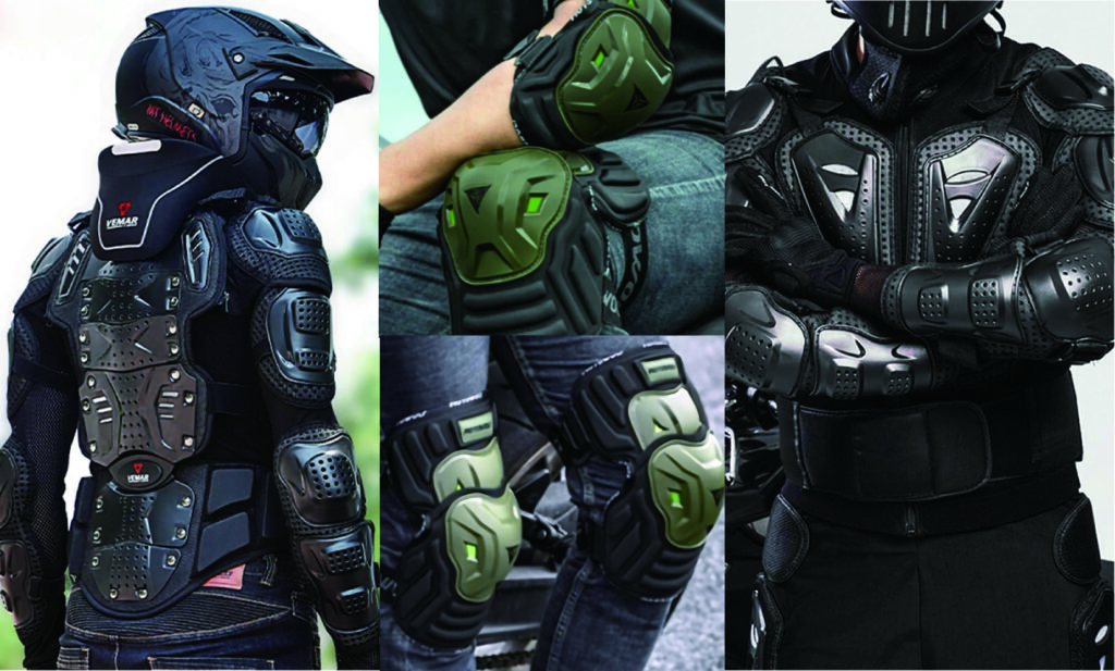 身体の特定の部位(胸部、背中、肘、膝など)への衝撃を緩和・分散し、骨折や重傷を防ぎます。