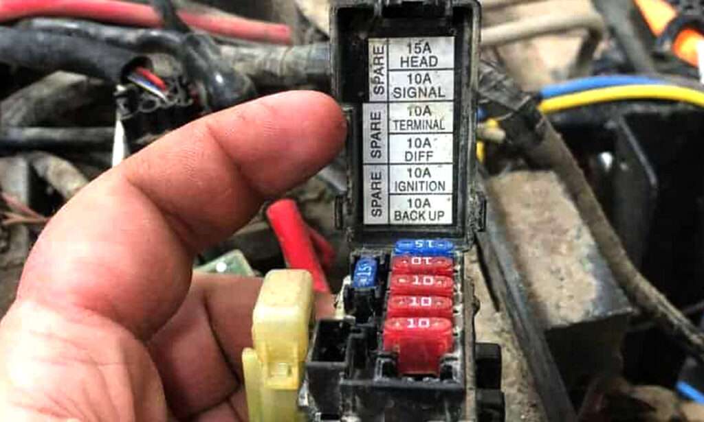- 点検方法:ヒューズボックスを開けて、金属線が切れていないか確認。